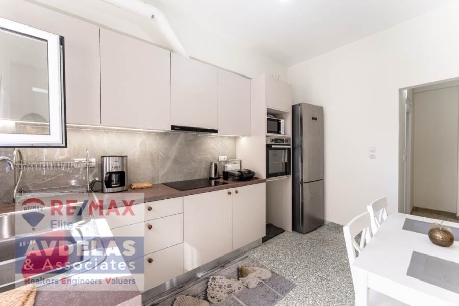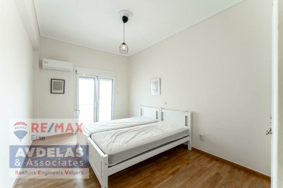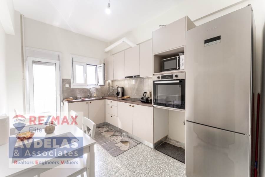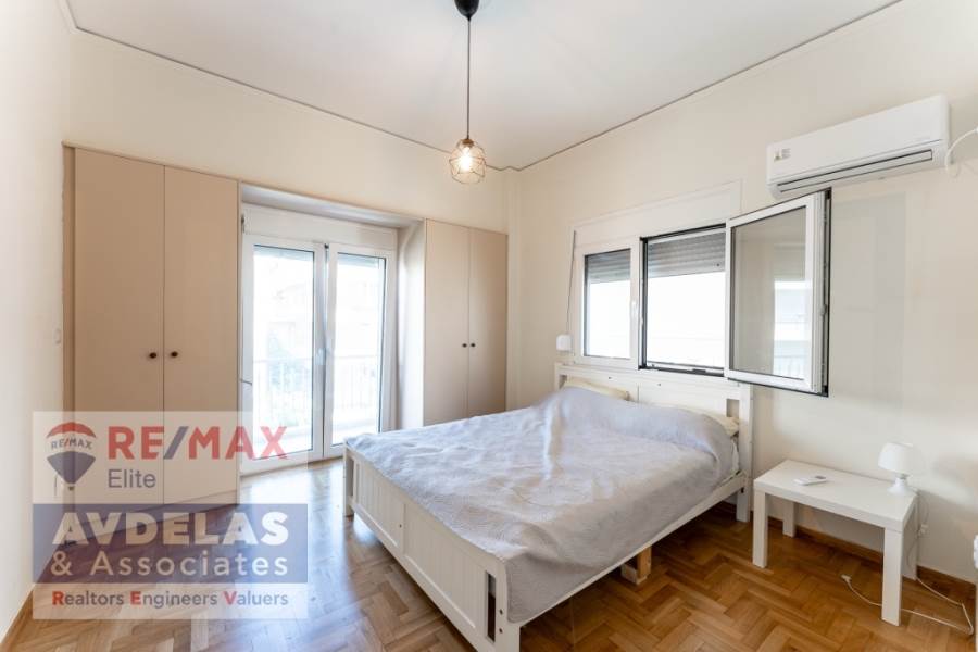 N. Smyrni: For rent 4th floor apartment of 76 sq m built in 1975. Recently renovated in 2024 and fully equipped for immediate use. It has two large bedrooms, a separate kitchen, bathroom and living room. It is located just 4 minutes walk from the Megalou Alexandrou tram stop and 4 minutes from the central square of Nea Smyrni. Rent 900 €. Possibility of providing a parking space. (K56)