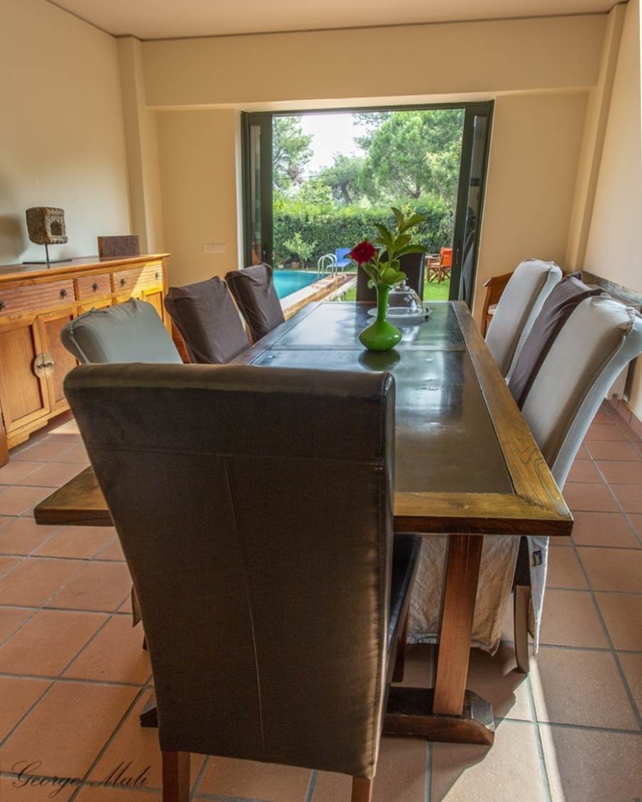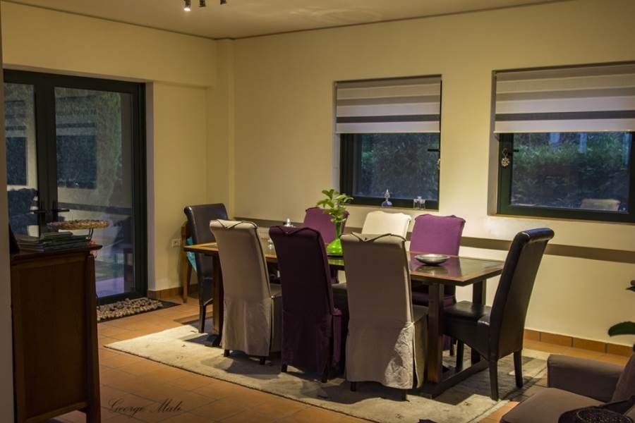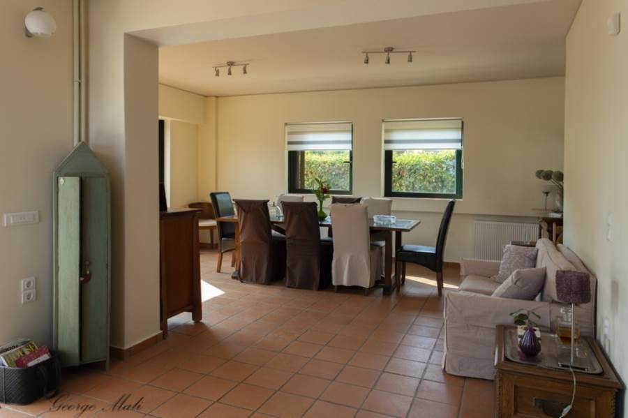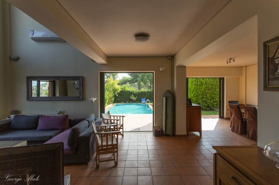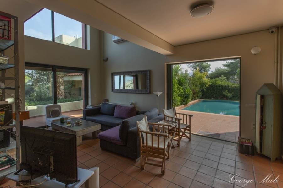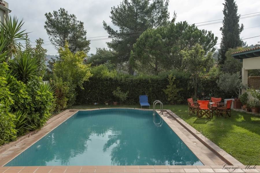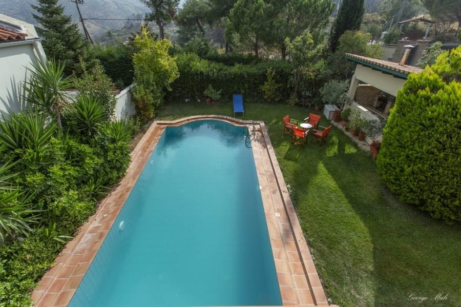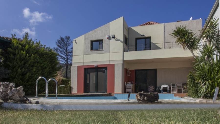 Kapandriti Kato Metohi Ri. For sale maisonette of excellent architectural luxury construction with an unlimited view of the Evoikos. Built in 2004 on 3 levels with an exclusive pool of 35 m2 in a complex of 3 maisonettes with fenced and perfectly landscaped surroundings. It has exclusive use of a garden of 661 m2 within a plot of 10,250 m2. The first floor includes two bedrooms with their own bathrooms as well as an open office space. On the ground floor there is a single room of 85 m2 with an open plan kitchen, a living room with a fireplace, a dining room with a beautiful view of the pool and a wc. Finally, the semi-basement, which has plenty of light from large windows, includes a 40 m2 main living space, internal storage and a bathroom. In the garden there is an outdoor bbq with a wood oven and installation of a hot water shower sink. There are also external warehouses and the oil heating boiler room. Price €450,000 (K65)